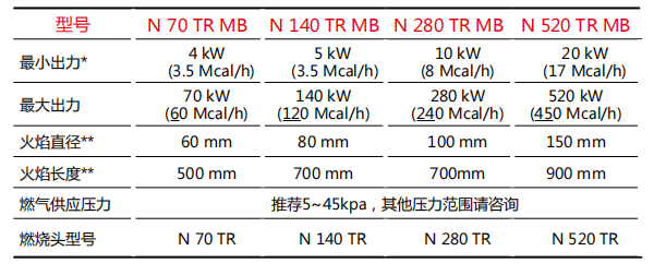 以上为数据为燃烧器对大气测试所得数据,真实情况受炉膛环境的影响。